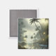 Beaux palmiers et océan à la tombée de la nuit avec de jolies lumières.
