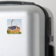 Cet aimant présente un panier de paille débordant de bleuets frais et mûrs. Il est installé sur l'herbe avec des fleurs sauvages roses contre un ciel bleu pur.