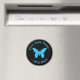 Papillon ulysse bleu. Icône vectorielle avec couleur personnalisable. Couleur arrière - plan personnalisée. Deux champs de texte personnalisés sur cercle.