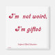 "Je ne suis pas bizarre, je suis doué" à l'encre de marron sur un aimant. Choisissez votre taille et votre forme préférées.