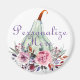 Une élégante aquarelle citrouille de chute pastel rose, or et turquoise. Embelli de fleurs, rayures et pois. Un automne floral mignon et douillet.