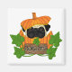 Citrouille sur une vigne avec un mignon chien Carlin à l'intérieur du Citrouille. Un panneau en bois dans le patch Citrouille dit Pugkin Patch. Beaux articles d'Halloween, vêtements, invitations d'Halloween, Sacs de Trick ou de Treat et plus pour les amoureux de Carlins!