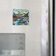 AI a créé l'interprétation à partir de ma description d'un paysage cubiste stylisé présente des montagnes angulaires avec des teintes variées de bleu, vert et jaune qui véhiculent un sentiment de profondeur et de lumière. Une cascade coule à travers le terrain rocheux, contrastant fortement avec les formes géométriques qui composent les montagnes et le ciel.