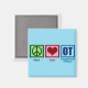 Un joli cadeau de Noël d'ergothérapeute portant un signe vert de paix, un coeur rouge et un OT écrit en bleu sur un arrière - plan bleu. L'ergothérapie est une profession si importante. Il aide à la fois les adultes et les enfants avec la thérapie sensorielle.