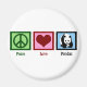 Adorable ours de panda dans un carré bleu à côté d'un panneau vert de paix et d'un coeur rouge sur un bel aimant de réfrigérateur animal. J'adore les mignons pandas sur mon réfrigérateur.