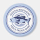 Customisez cet aimant de magasin de pêche familiale pour un magasin de poisson et de pêche à utiliser pour le marketing de magasin. Un modèle de pêcheur cool et bleu marine avec une basse à bouche ouverte et votre texte ou votre nom de famille personnalisés.