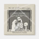 Petit Garçon s'agenouille dans la crèche à la vue de Marie tenant le bébé Jésus et Joseph assis à côté d'eux. Notre carte de Noël 2016 présente la citation de David A. Carrizales illustrée par Christie Black.