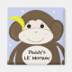 Un mignon petit singe avec un gros grain et une banane cachée dans son oreille. Un arrière - plan bleu avec des pois blancs. Le dicton 'daddy's lil' peut être changé à volonté.