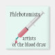 La seringue et le sang tombent avec le texte qui dit Phlebotomistes, artistes de la prise de sang.