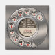 Le téléphone rotatif de style vintage rappelle le bon vieux temps où il a fallu éternellement composer un numéro à l'aide de vos doigts et tourner les numéros autour du cadran. Un grand souvenir des années soixante, soixante-dix et quatre-vingts. Aspect métallique gris foncé avec le centre du téléphone marqué avec les anciens numéros pour la police, incendie, ambulance et opérateur, avec script "téléphone rotatif". Gris foncé et marron avec des chiffres rouges. Tous les droits de reproduction © www.CuteComfy.com