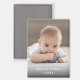 Offrez le cadeau de souvenirs spéciaux avec un élégant aimant photo rectangulaire personnalisé. Ce modèle est mis en place pour un bébé, mais il est facile de personnaliser avec le nom d'une famille, d'un ami ou d'un animal de compagnie, les initiales monogrammées d'un couple de mariages, ou toute formulation de votre choix. Les couleurs et le style de police peuvent également être customisés à l'aide de l'outil de conception Zazzle. Créez votre propre cadeau de conservation unique pour n'importe quelle occasion. Le design se compose d'une disposition minimaliste moderne, d'une typographie art déco vintage et d'une image. Il n'y a pas de meilleur cadeau que les joies simples de souvenirs chéris.