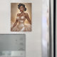 Black Pin-Up Golden Gown présente une femme noire glamour dans un style pin-up classique, rayonnant élégance et sophistication. Elle a ses cheveux foncés dans un updo complexe avec des boucles molles et volumineuses, donnant une ambiance hollywoodienne vintage. Sa tenue vestimentaire est une robe dorée étonnante et impuissante qui brille d'un éclat métallique, accentuant ses courbes. La robe est ornée d'un corset intégré avec une dentelle délicate qui s'étend le long des bords et d'une grande broche ornée au centre, ajoutant une touche d'opulence. La jupe de la robe coule de façon spectaculaire, avec une qualité étincelante, presque éthérée, comme si elle était poussiérée de minuscules éclats de parties scintillant qui attrapent la lumière. Elle est accessoirisée avec de luxueux bijoux, y compris des pendentifs, des boucles d'oreilles de style lustre ornées de perles et de pierres précieuses, un collier assorti qui drape élégamment sur sa colonne vertébrale, et un bracelet étincelant sur son poignet. Sa pose est bien positionnée et confiante, d'une main reposant doucement sur sa robe et de l'autre légèrement surélevée, exubérant grâce et allure. L'arrière - plan est un doux dégradé de tons dorés et beiges, avec une lueur subtile et brumeuse qui met en valeur l'atmosphère rêveuse et glamour de la pièce. De minuscules étincelles sont dispersées dans tout l'arrière - plan, ajoutant une touche magique qui complète le thème doré de sa robe. La composition globale, avec ses couleurs riches, ses détails complexes et son style élégant, fait de cette illustration une représentation captivante de la beauté intemporelle dans le genre pin-up.
