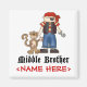 Pirate mignon en bandana rouge avec singe, texte 'Middle Brother'. Couleur arrière - plan personnalisable. A jumelé grand frère et les dessins de petit frère. frère frères kewlkids milieu+frère frères frères frères soeurs mignons pirates singe jolly+roger