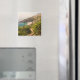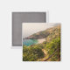 Aimant photo souvenir avec la plage isolée et vide Tonnarella dell'Uzzo sur la côte rocheuse nord de la Sicile dans le Parc national du Lo Zingaro, entre Scopello et San Vito Lo Capo, se baignant dans la lumière du matin brumeuse.