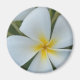 Photo de haut d'une belle fleur de plumeria tropicale blanche et jaune de Fidji.