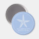 Ce bel aimant rond d'inspiration côtière présente une étoile de mer blanche sur le bleu clair. Personnalisez avec votre choix de nom ou de texte spécial.