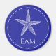 Ces mignons magnets ronds monogrammés d'inspiration côtière présentent une étoile de mer blanche sur un arrière - plan de bleu marine classique. Personnalisez le monogramme avec votre choix d'initiales. Idéal pour les sacs cadeaux monogrammed beach party.