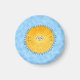 Une photo de porc-épic / poisson-balai avec un arrière - plan à motifs bleus.