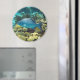 Nageant au-dessus de coraux mous, les écailles d'un poisson de récif bleu captent quelques brumes du soleil, tandis que la lumière filtre au-dessus de la surface de l'eau, tandis que d'autres poissons plus petits nagent dans l'arrière - plan.
