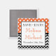 Magnet Réservez la date de coutume élégant pour annoncer votre mariage, conçu avec des pois blancs sur orange en haut et un motif en zigzag noir & blanc en bas.