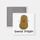 "Sweet Potato" en texte noir. Au-dessus du texte, une jolie patate douce brune avec un grand sourire heureux.