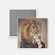 Ce design présente un portrait d'un lion en costume et en cravate.