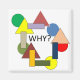 Un ensemble de formes géométriques colorées disposées en cercle entoure le mot 'POURQUOI?' au centre. Les formes comprennent des triangles, des cercles et des rectangles de différentes couleurs.