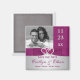 Ce prune violet et gris argenté sauvez la date mariage de photo magnétique a un magenta foncé violet ruban IMPRIMÉ et arc avec une paire de bijoux en diamant IMPRIMÉ et parties scintillant FAUX (simulé) joint le coeur sur lui qui correspond aux invitations de mariage montré ci-dessous. S'il y a d'autres articles correspondants dont vous avez besoin, veuillez envoyer votre demande par courriel à niteowlstudio@gmail.com.