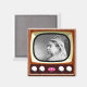 En fait, ils n'avaient pas de télévision quand la reine Victoria était sur le point de l'être. Mais au moins elle est assez vieille pour être hors du droit d'auteur. J'ose dire qu'elle penserait probablement que c'était une façon cool d'apparaître sur un aimant, en faisant un changement par rapport aux vieilles pièces, timbres et médailles habituelles. :)