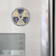 Symbole de radiation grondée/alerte radioactive, noir/jaune sur violet, lourdement affligé. Sur t-shirts, sweatshirts, boutons, cadeaux.