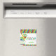 Cet aimant de carré comporte un rat de bibliothèque tenant un crayon et s'asseyant sur une pile de livres. L'arrière - plan est un motif diagonal coloré de rayure avec un boîtier blanc au centre avec le mot coloré : Rat de bibliothèque. Le texte personnalisable vous permet d'ajouter un nom personnel.