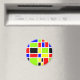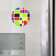 Un design abstrait géométrique à bords durs et coloré, qui rappelle peut-être un peu Mondrian.