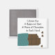 Un design amusant pour les amateurs de chocolat. Un bar à chocolat foncé avec un morceau du coin. Un emballage bleu et un petit coeur de chocolat.
