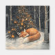 L'art de l'aimant représente un adorable renard endormi devant un sapin de Noël dans les bois.