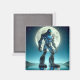 Sasquatch se dresse sous une pleine lune entourée de montagnes, révélant un exosquelette de titane de circuits électroniques et de lumières LED...