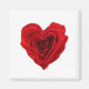 Lovely romantic illustration featuring a heart-shaped red rose blossom with water drops on a clean background.