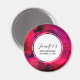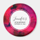 Aimant d'anniversaire avec un fond abstrait cool. Des coups de pinceau rouge foncé et violet créent un design audacieux, moderne et vibrant. Un cercle superposé avec un texte personnalisé à l'intérieur.