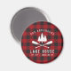 Personnalisez votre maison de campagne avec un bel aimant rustique à thème, avec votre nom et "Lake House", Cabine, Ranch ou autre texte avec sa date et son emplacement établis si désiré. Ce design personnalisé et unique présente un charmant texte rustique de style campagnard avec une silhouette blanche de pins avec des barques ou des pagaies sur un imprimé classique de plaid de buffle rouge. Idéal pour vos vacances de noël ou à tout moment de l'année. Pour voir d'autres modèles comme celui-ci, veuillez visiter ma boutique ici à "Zazzle.com/Store/Rustic_Charm". Merci .