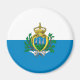 L'état et le drapeau de guerre de Saint-Marin est formé par deux bandes horizontales égales de blanc (dessus) et bleu clair avec les armoiries nationales superposées au centre ; le blason a un bouclier (avec trois tours sur trois sommets) avec une couronne fermée sur le dessus, flanqué d'une couronne de chêne et de laurier, avec un rouleau en dessous portant le mot LIBERTAS (Liberté). Les deux couleurs du drapeau représentent la paix (blanc) et la liberté (azur).