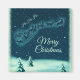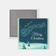 Un aimant avec une illustration vintage de Père Noël dans son traîneau tiré par ses rennes. De petites étoiles arrosent le ciel nocturne. Des pins couverts de neige au sol. Vintage esprit rétro. Texte : Ho Ho Ho Joyeux Noël.