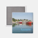 Une photo du port de Sassnitz sur Ruegen à Mecklenburg Vorpommern, Allemagne est présentée sur cet aimant souvenir. Le texte est personnalisable ou amovible. Les magnets font un cadeau idéal, ou un cadeau personnel pour coller sur votre réfrigérateur ou votre meuble de rangement. Cet aimant carré est de 2" x 2" (5cm x 5cm) ou vous pouvez choisir parmi un aimant rond de différentes tailles.