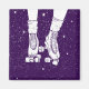 Illustration d'une patinoire ou d'une patinoire de nuit. Leurs pieds et leurs patins à rouleaux sont dans le ciel de nuit pourpre, rempli d'étoiles, au-dessus d'une forêt.