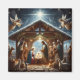 Cette belle et festive crèche s'ajoute parfaitement à votre décor de Noël. L'oeuvre présente la Sainte Famille, Marie, Joseph et le bébé Jésus, entourés d'anges et de bergers en adoration. La scène est placée sur un fond d'étoiles scintillantes et d'une étoile brillante, symbolisant la naissance du Christ. Cette image intemporelle est un rappel du vrai sens de Noël.