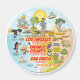 Un dessin animé fantaisiste de la Californie du Sud - les personnages classiques profitent du soleil chaud de la Californie qui brille au-dessus de tout.