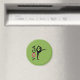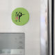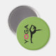 Un aimant au design minimaliste simple de la silhouette noire d'une femme faisant une pose de yoga. Bras tendus et une jambe levée, exercice holistique.