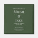 Arrière - plan vert forestier. Monogramme blanc/Initiales. Simple. Enregistrez notre Date. Site Web. Magnet. Carré.