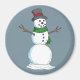 Un bonhomme de neige à l'allure joyeuse mais froide porte un chapeau haut à ruban rouge et une écharpe verte sur cette illustration hivernale de Richard H. Fay.