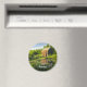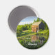 Photo de voyage d'une grange vintage réfléchissant dans un étang. L'herbe verte printanière et la Lupine florissante font une scène colorée lors d'une belle journée claire avec le ciel bleu dans les Adirondacks. La photo tranquille fera un souvenir ou un cadeau unique de vos vacances à New York.