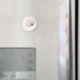 Mon image, "Stand in the Light" sur un aimant rond. Une fleur rose avec des textures et des tons numériques ajoutés.