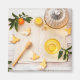 Thé en verre et thé avec thé vert, miel, cuillère à miel, kumquats et biscuits avec forme papillon sur la torchère prête pour le thé.
